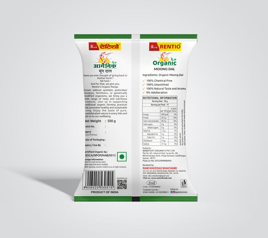 Rentio Organic Moong Dal - Pack of 2 (500gms x 2)