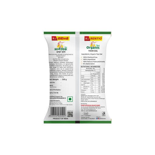 Rentio Organic Toor Dal - Pack of 2 (500gms x 2)